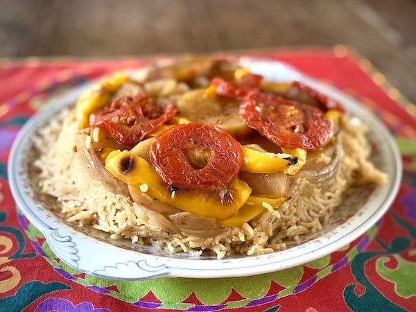 One of the ways I stayed sane during lockdown was creating a show featuring new books that debuted during that unfortunate time. Over three seasons, The Blue and Yellow Kitchen ran for 49 episodes and featured novels, memoirs, and cookbooks. I got to meet some incredible authors and explore worlds I would have missed otherwise. Perhaps the best example of this was the show featuring Hala Alyan’s novel The Arsonist’s City. Alyan’s beautiful novel takes place in Damascus and Beirut, covers the story of three generations of a family, and culminates in them returning to their family home in Beirut after a death. This dish, makloubeh (“upside-down” in Arabic) is mentioned in one scene and would have been a common celebration dish for this fictional family. I researched the dish, searched food blogs, asked for direction from friends with family in the Middle East, and ended up making makloubeh six times before getting it right. I still make it today. This change in perspective, even when I was stuck at home, served me well.